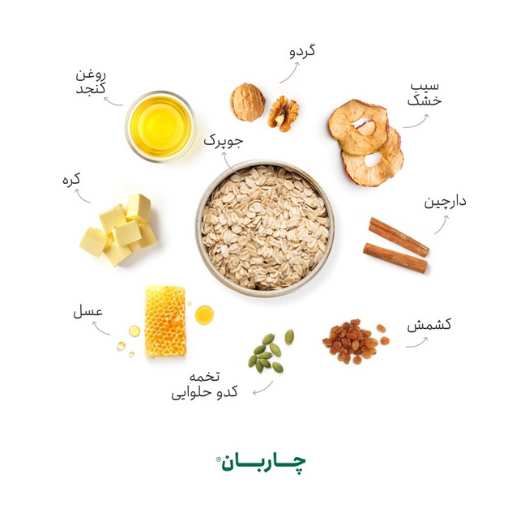 موسلی گردو، سیب و دارچین چاربان با فیبر بالا، آنتیاکسیدان، آهن و ویتامینهای مفید، به بهبود گوارش، پیشگیری از کمخونی و جوانسازی پوست کمک میکند.